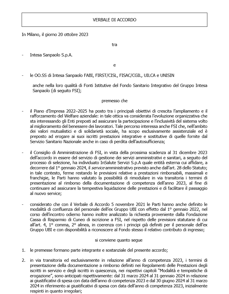 Accordo 20 ottobre 2023 - variazione dei termini di presentazione della documentazione a rimborso definiti nei Regolamenti delle Prestazioni degli iscritti in servizio e degli iscritti in quiescenza + iscrizione personale di Fondazione Cassa di Risparmio di Cuneo e delle societa'/enti strumentali riconducibili alla medesima dal 1 gennaio 2024