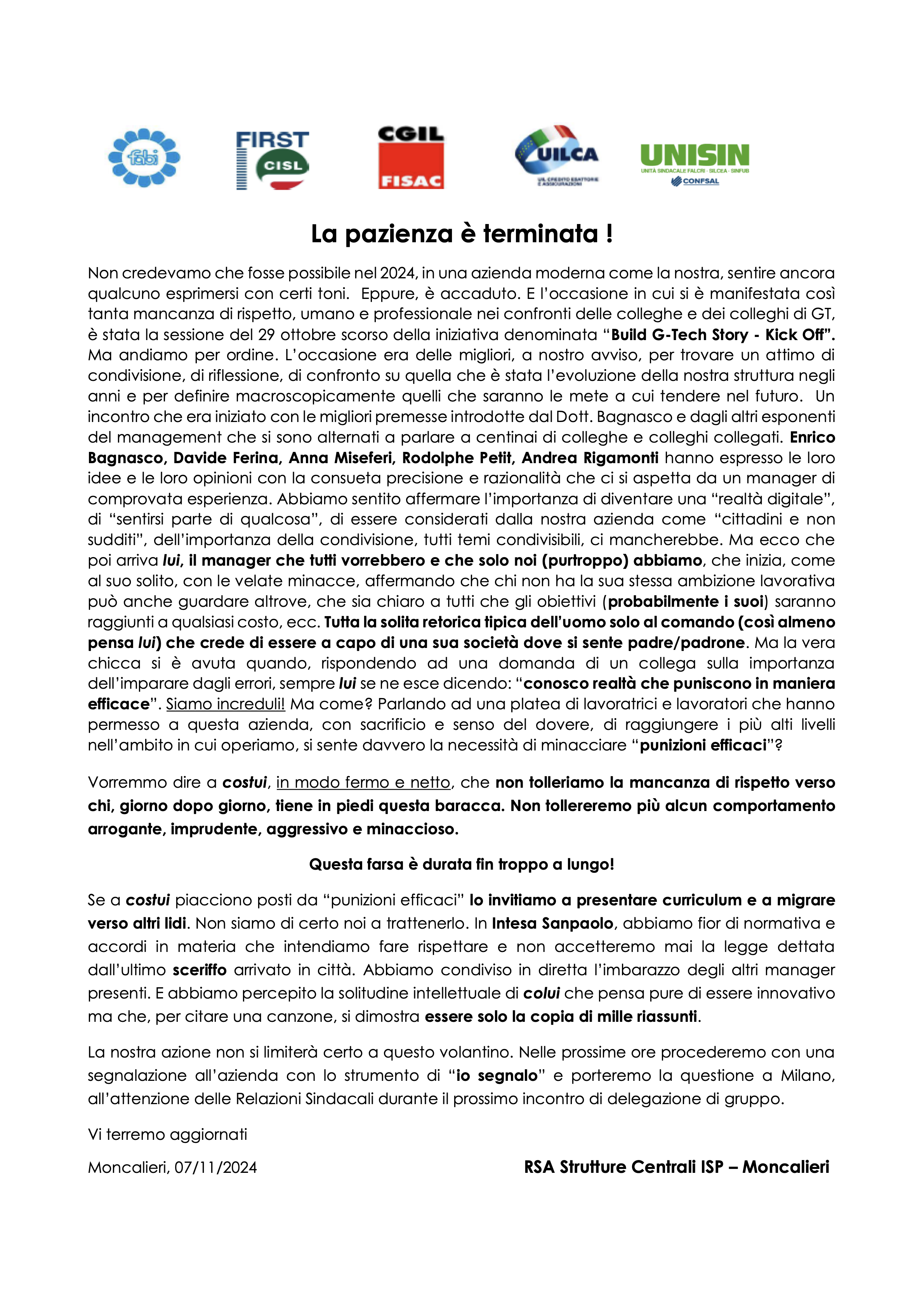 Moncalieri, 07/11/2024 RSA Strutture Centrali ISP - Moncalieri