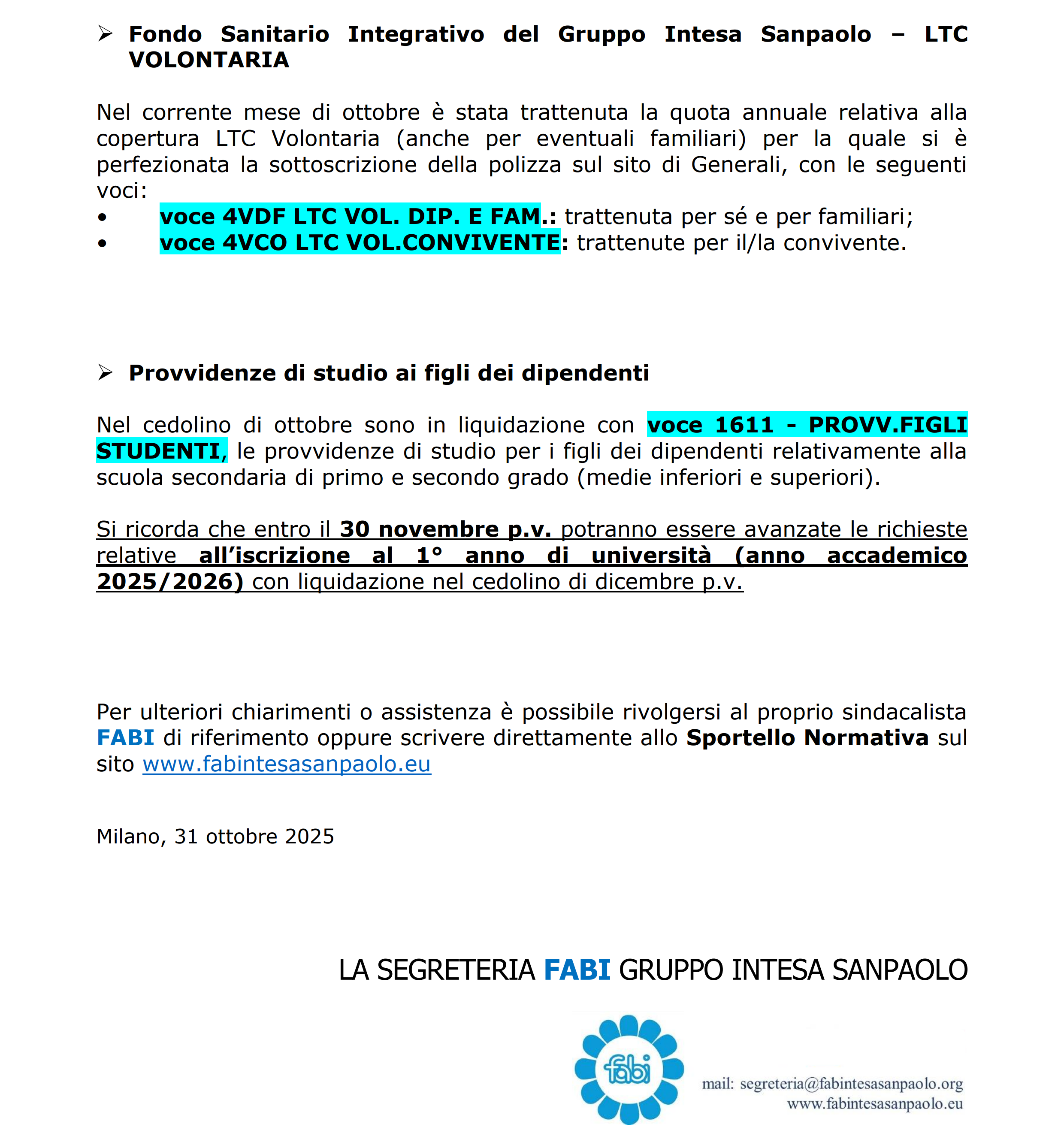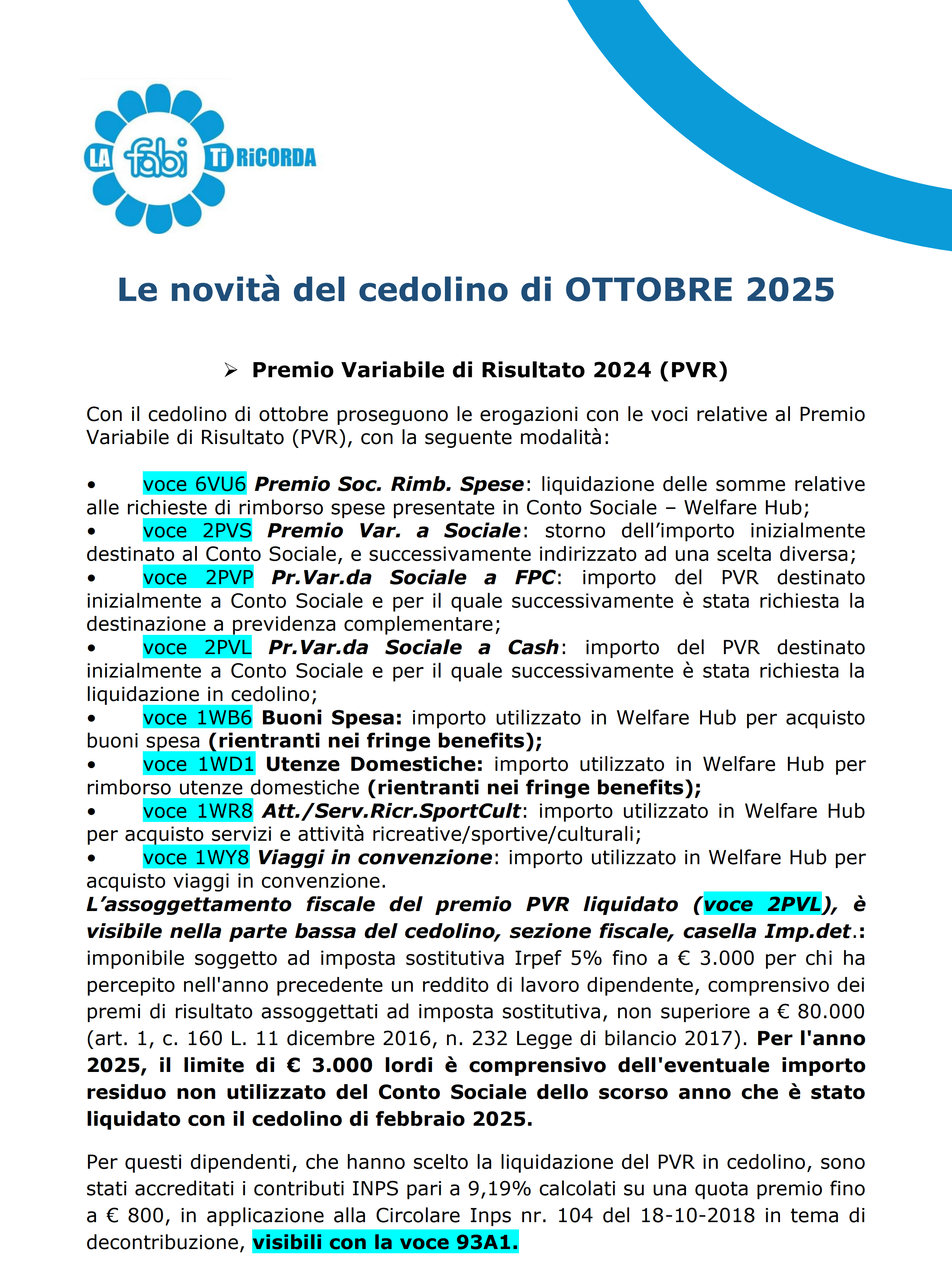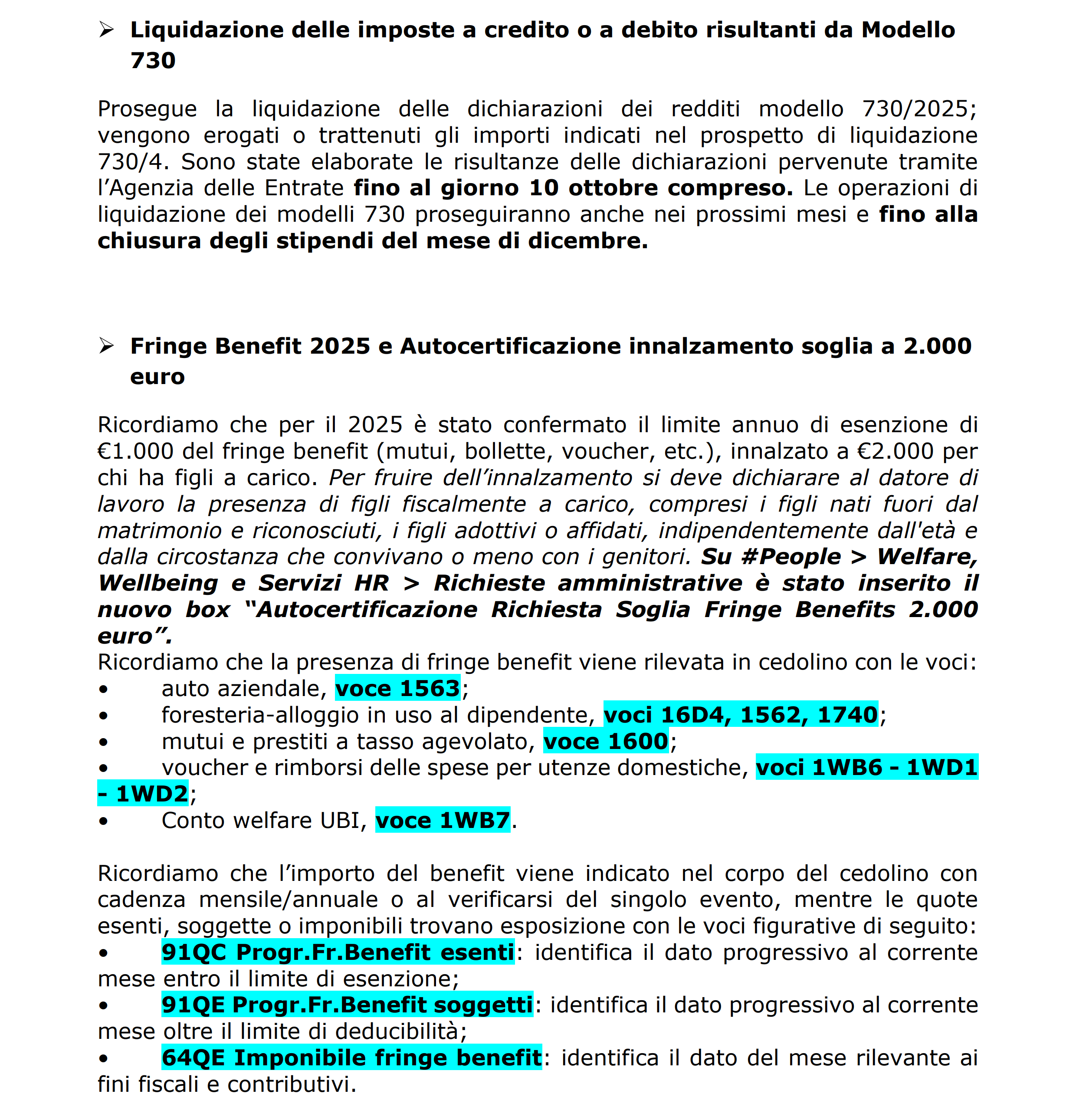 Le novita' del cedolino di SETTEMBRE 2025