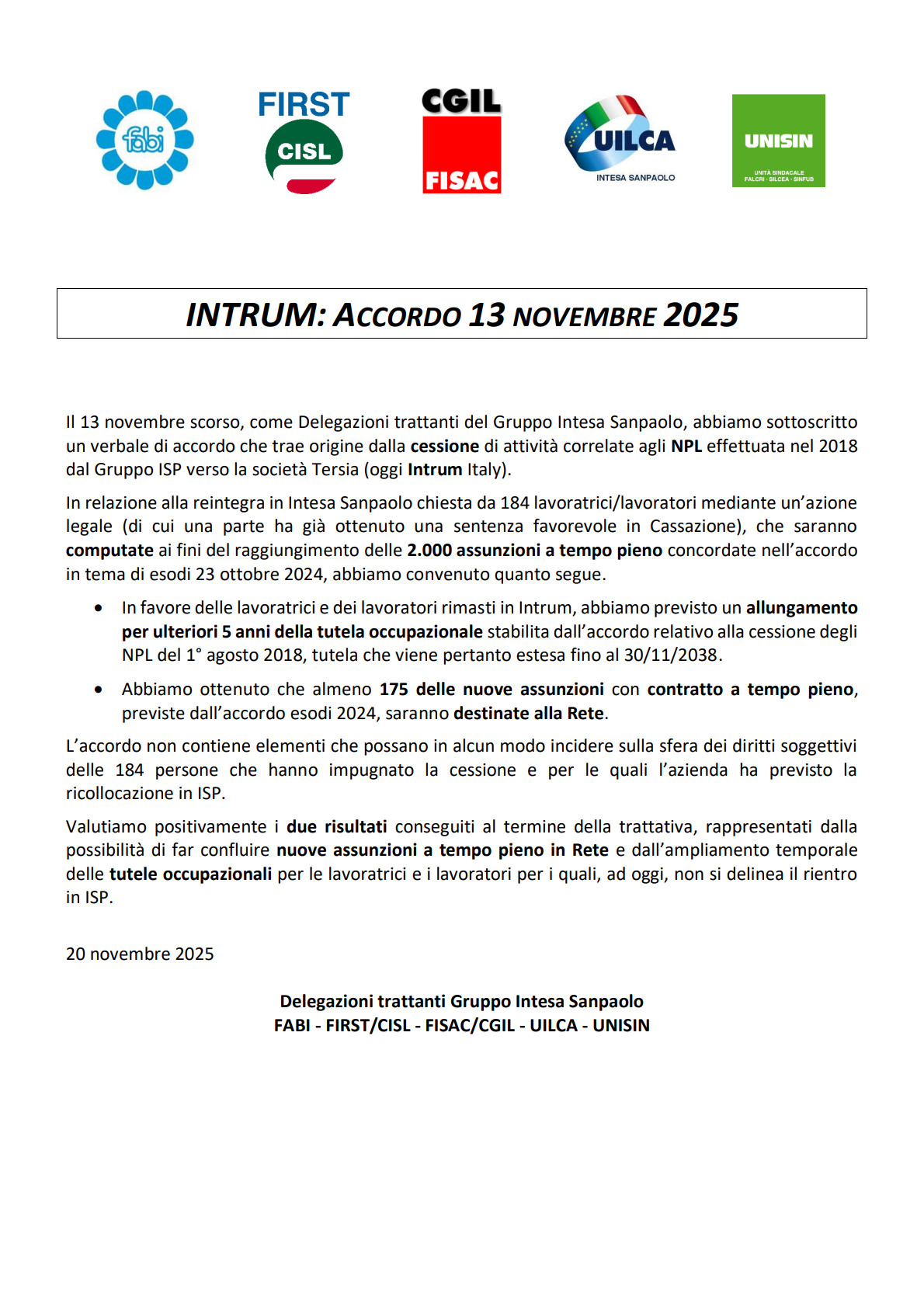 20 novembre 2025 Delegazioni trattanti Gruppo Intesa Sanpaolo FABI - FIRST/CISL - FISAC/CGIL - UILCA - UNISIN