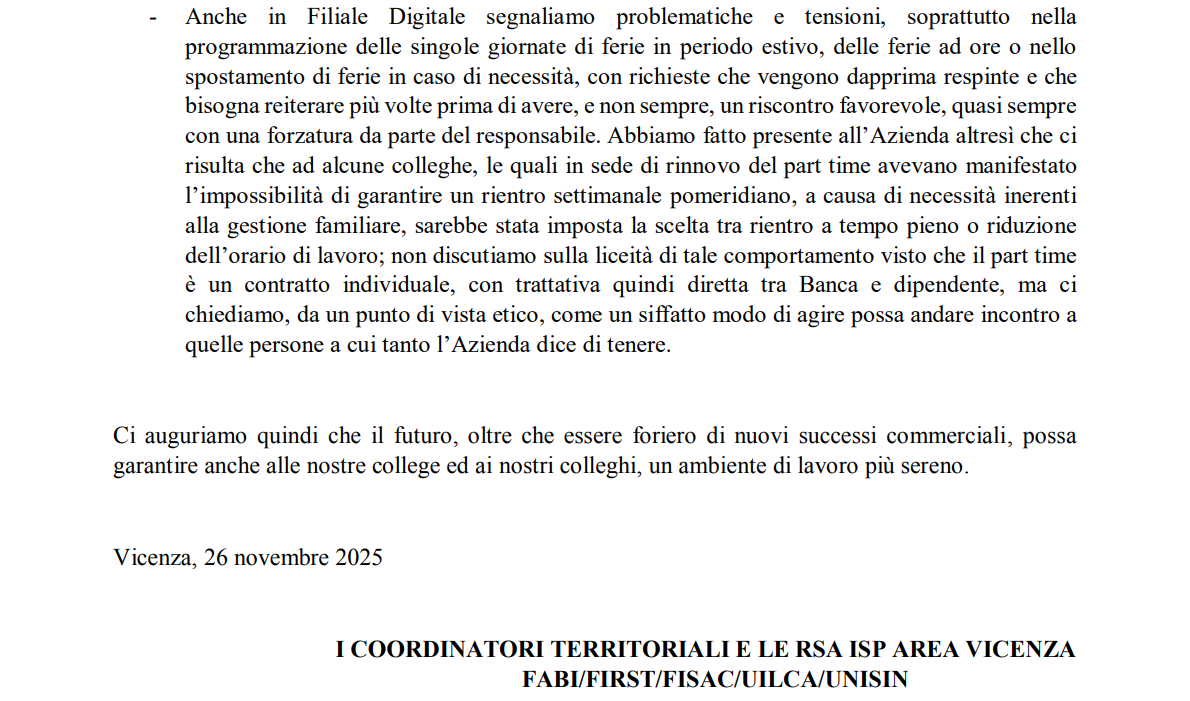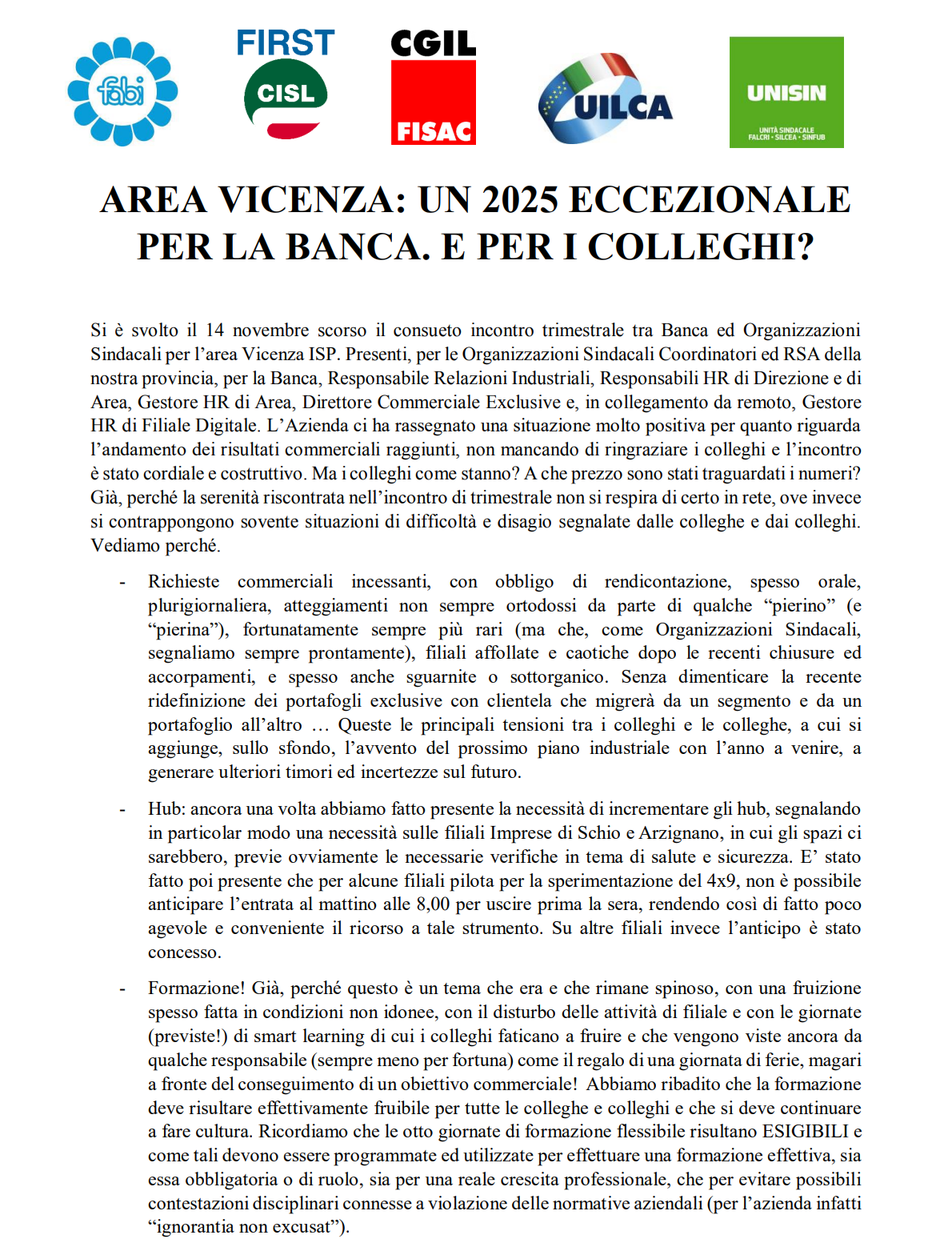 INCONTRO TRIMESTRALE 25 NOVEMBRE