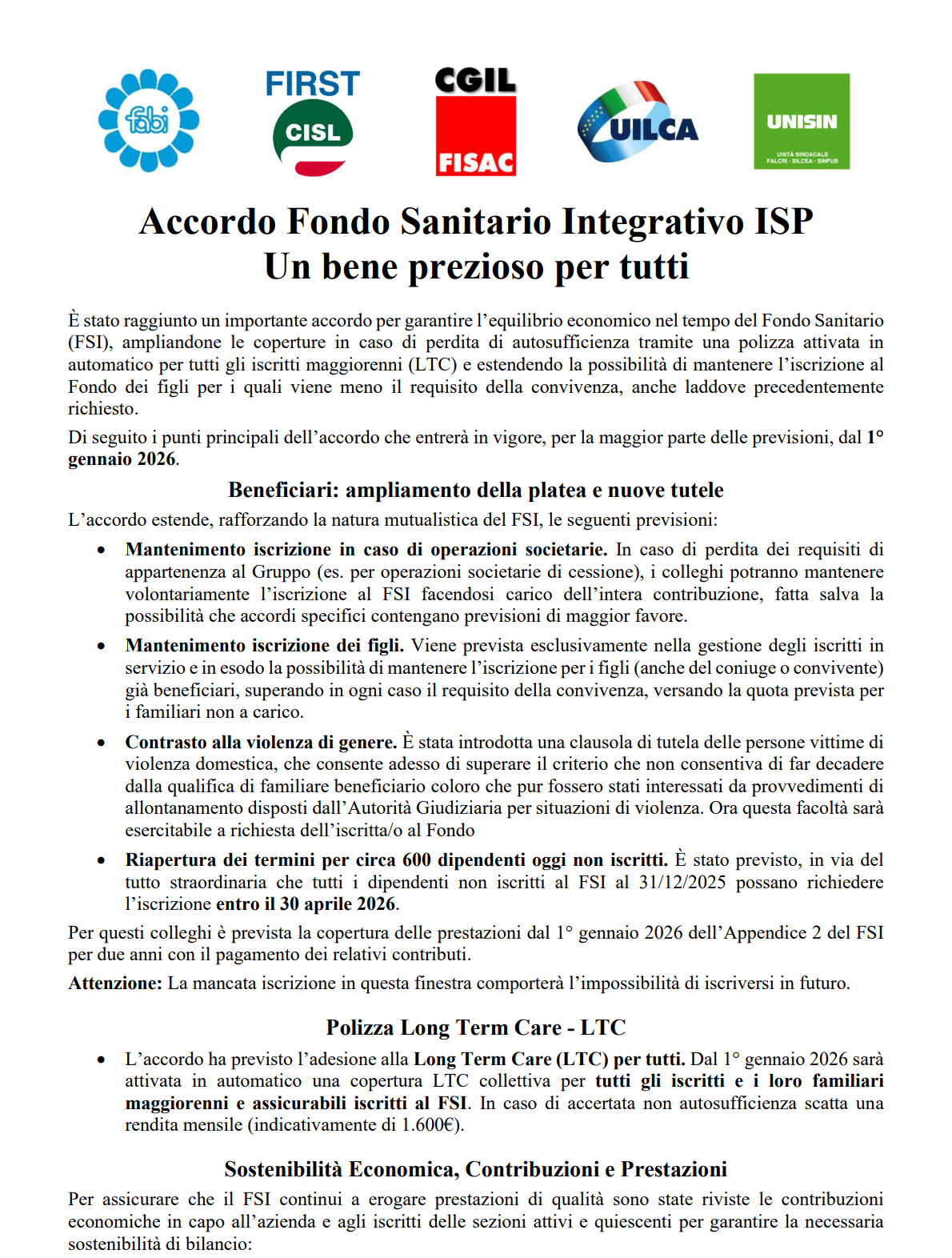 Accordo Fondo Sanitario Integrativo ISP - Un bene prezioso per tutti