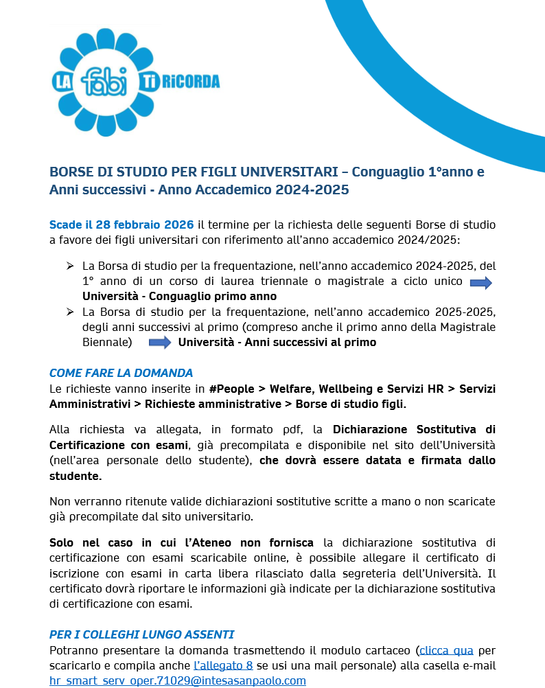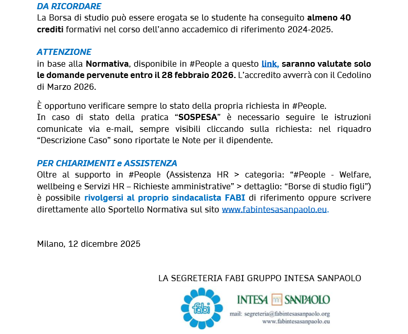 BORSE DI STUDIO: 1 ANNO DI UNIVERSITA' - A.A.2025/2026