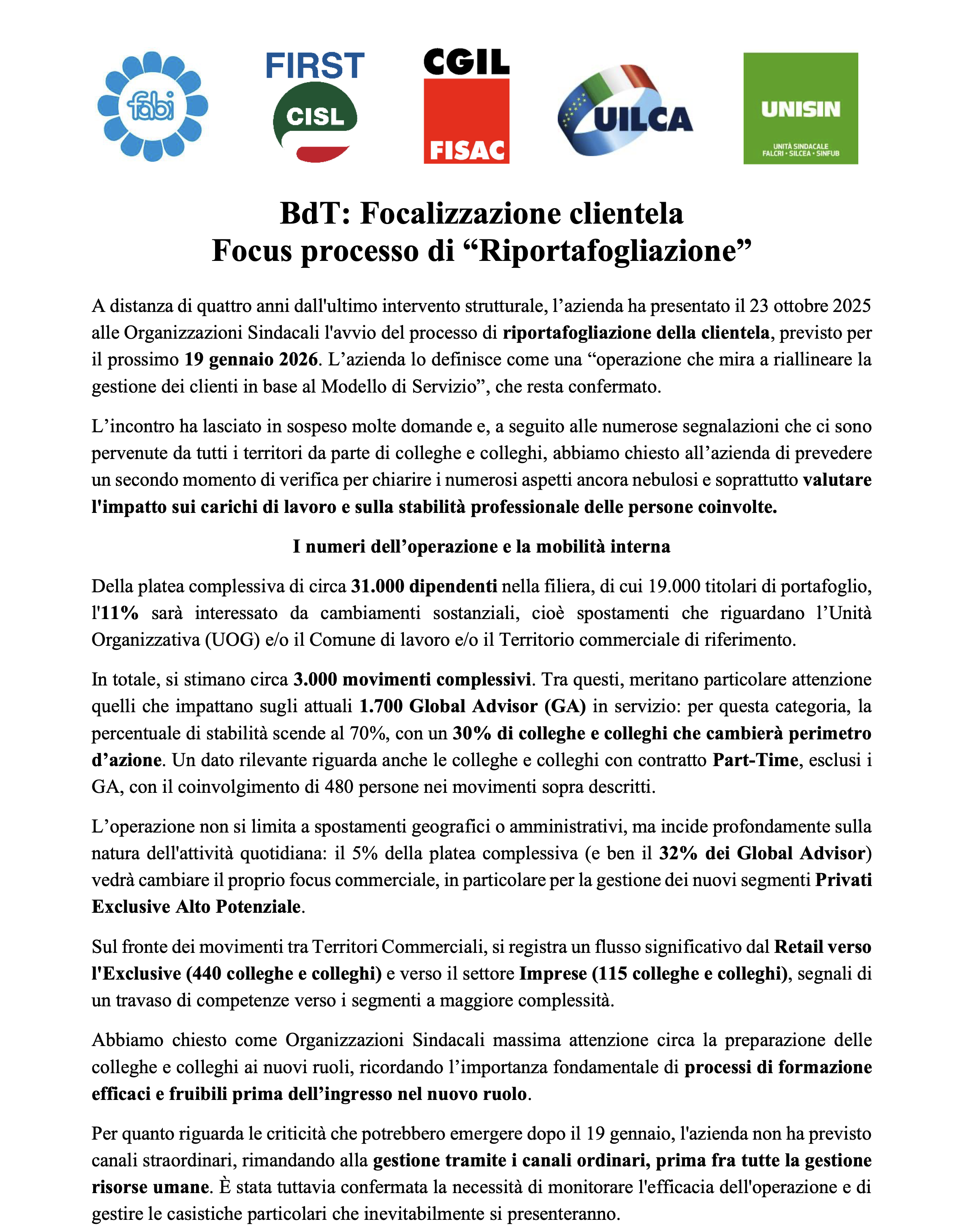 BdT: Focalizzazione clientela - Focus processo di ''Riportafogliazione''