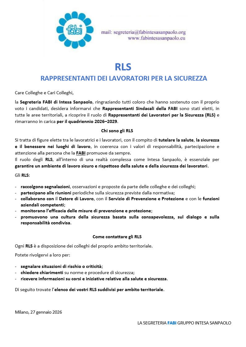 Milano, 27 gennaio 2026 LA SEGRETERIA FABI GRUPPO INTESA SANPAOLO