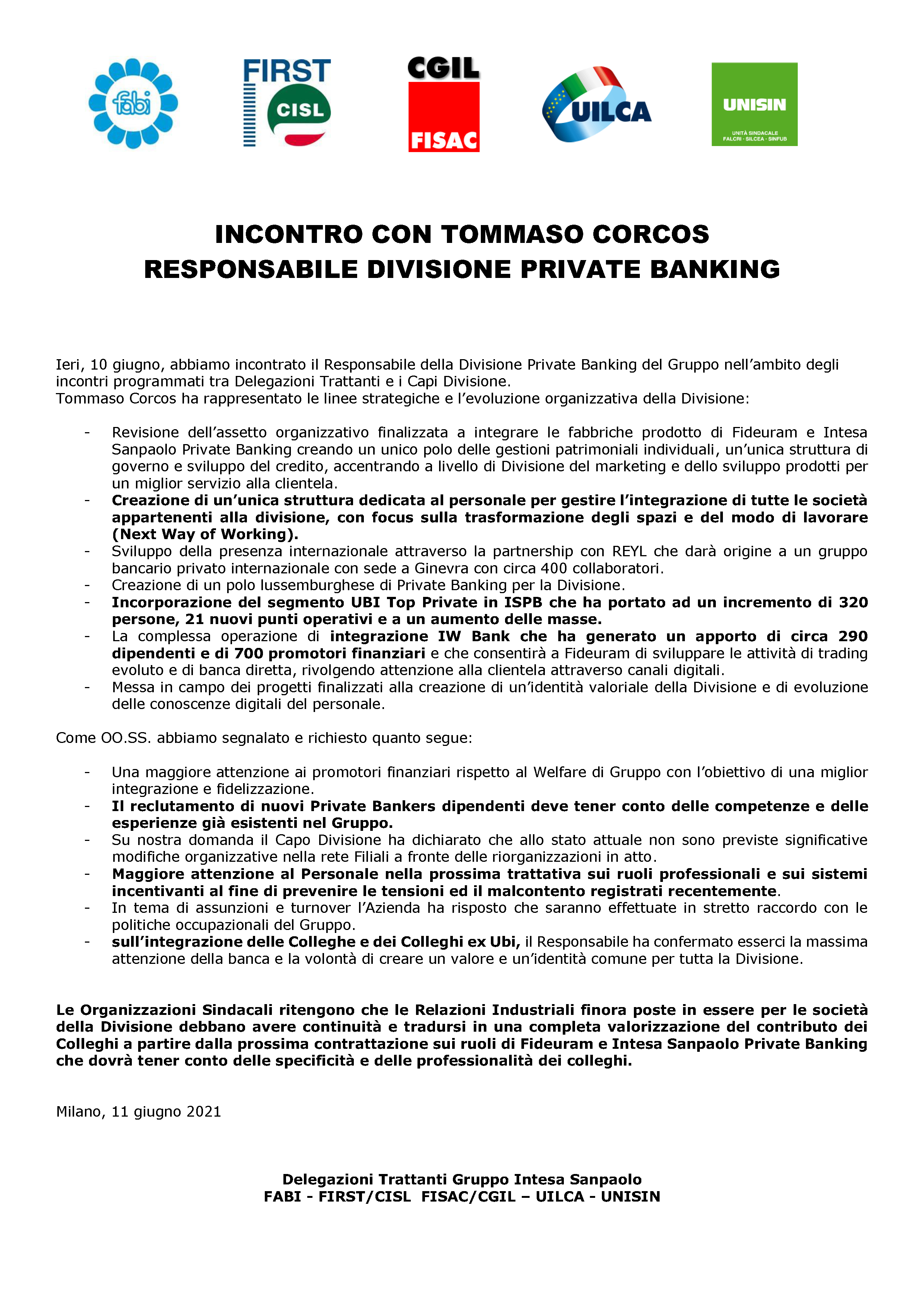 INCONTRO CON TOMMASO CORCOS RESPONSABILE DIVISIONE PRIVATE BANKING
