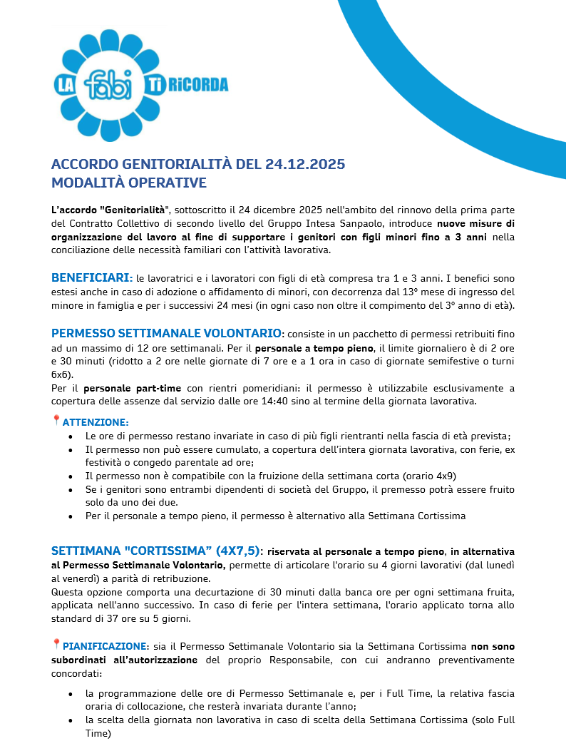 ACCORDO GENITORIALITA' DEL 24.12.2025 MODALITA' OPERATIVE