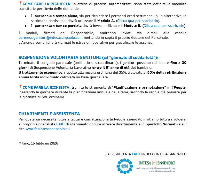 Milano, 16 febbraio 2026 LA SEGRETERIA FABI GRUPPO INTESA SANPAOLO
