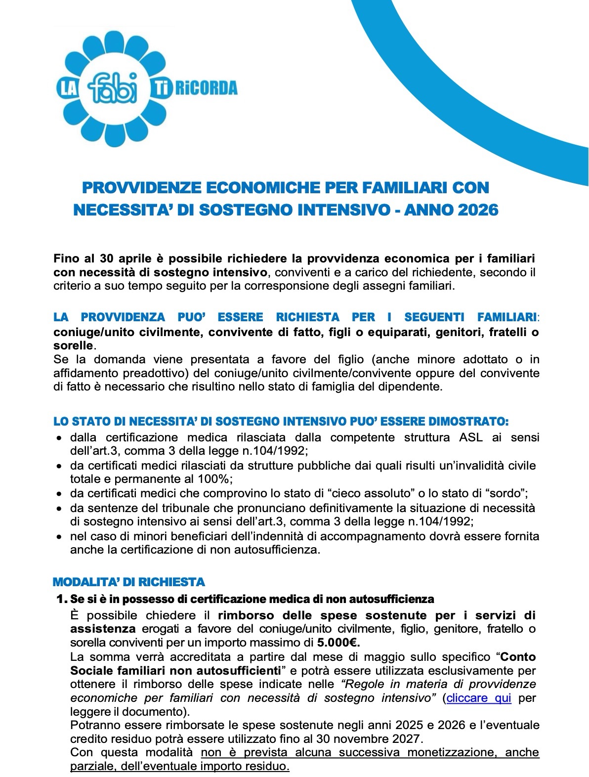 PROVVIDENZE ECONOMICHE PER FAMILIARI CON NECESSITA' DI SOSTEGNO INTENSIVO - ANNO 2026